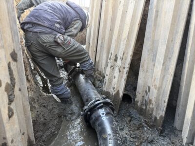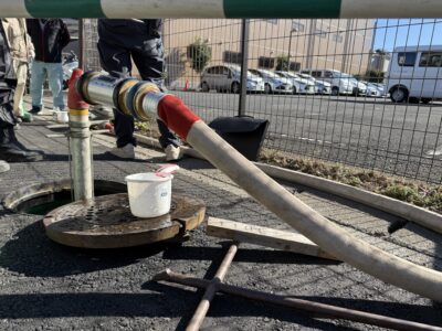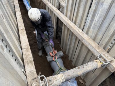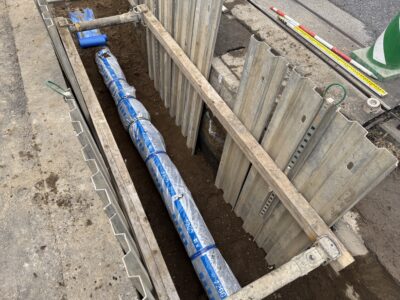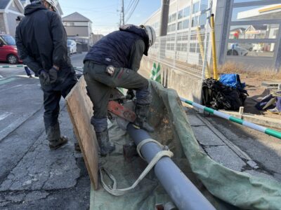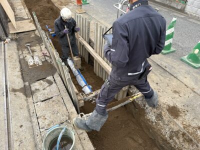 現在、松戸市のほうで本管工事を行っておりφ200の布設がようやく明日終わりを迎えます。
