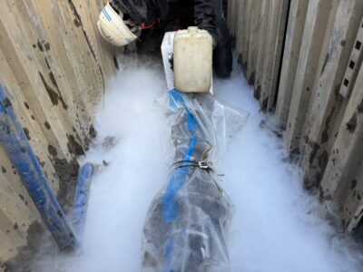 現場は場所により大水場で毎日、泥まみれになりながら施工しました。
